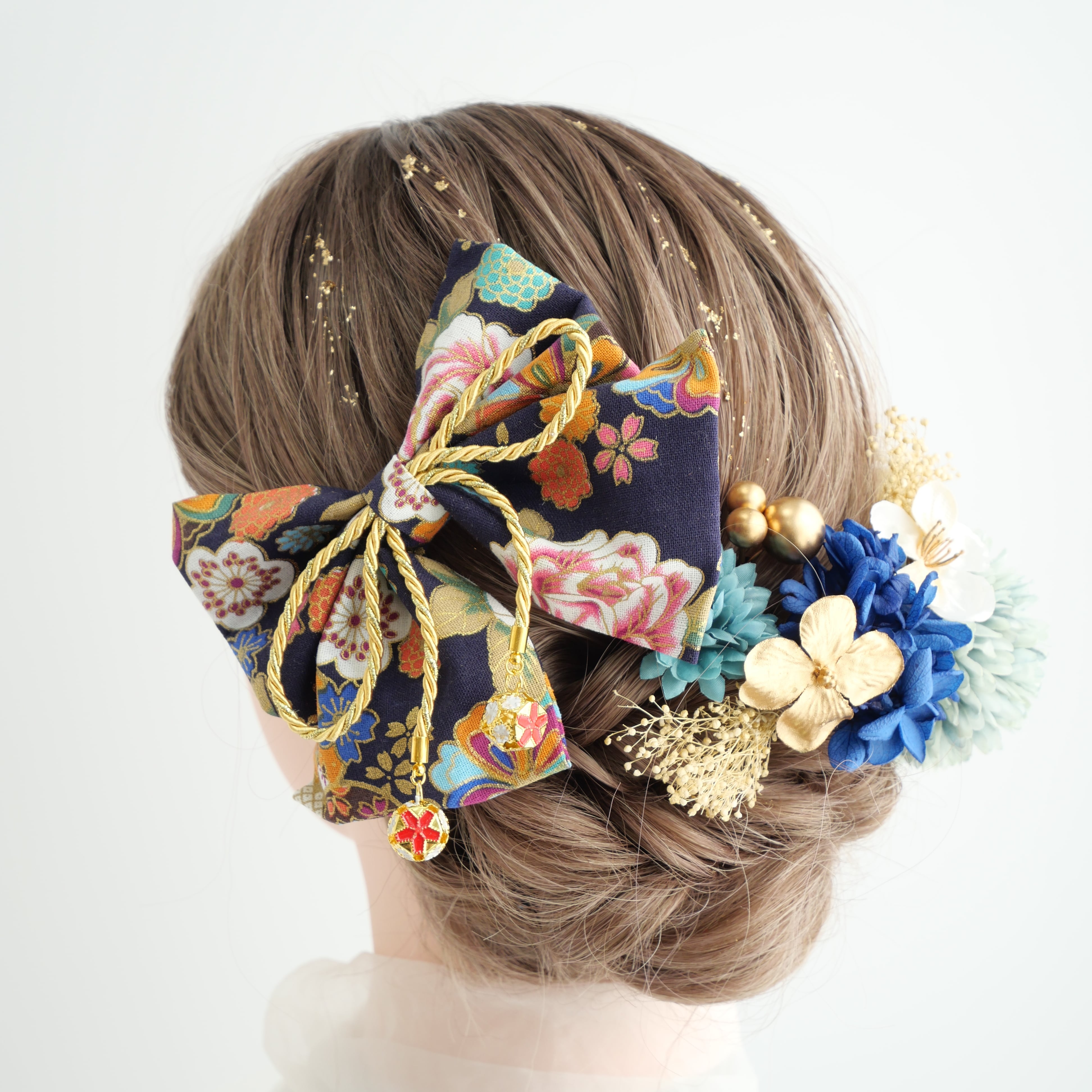 A401 卒業式 和リボン 七五三の髪飾り 青 七五三 ゆかた 成人式 前撮り ネイビー 紺
