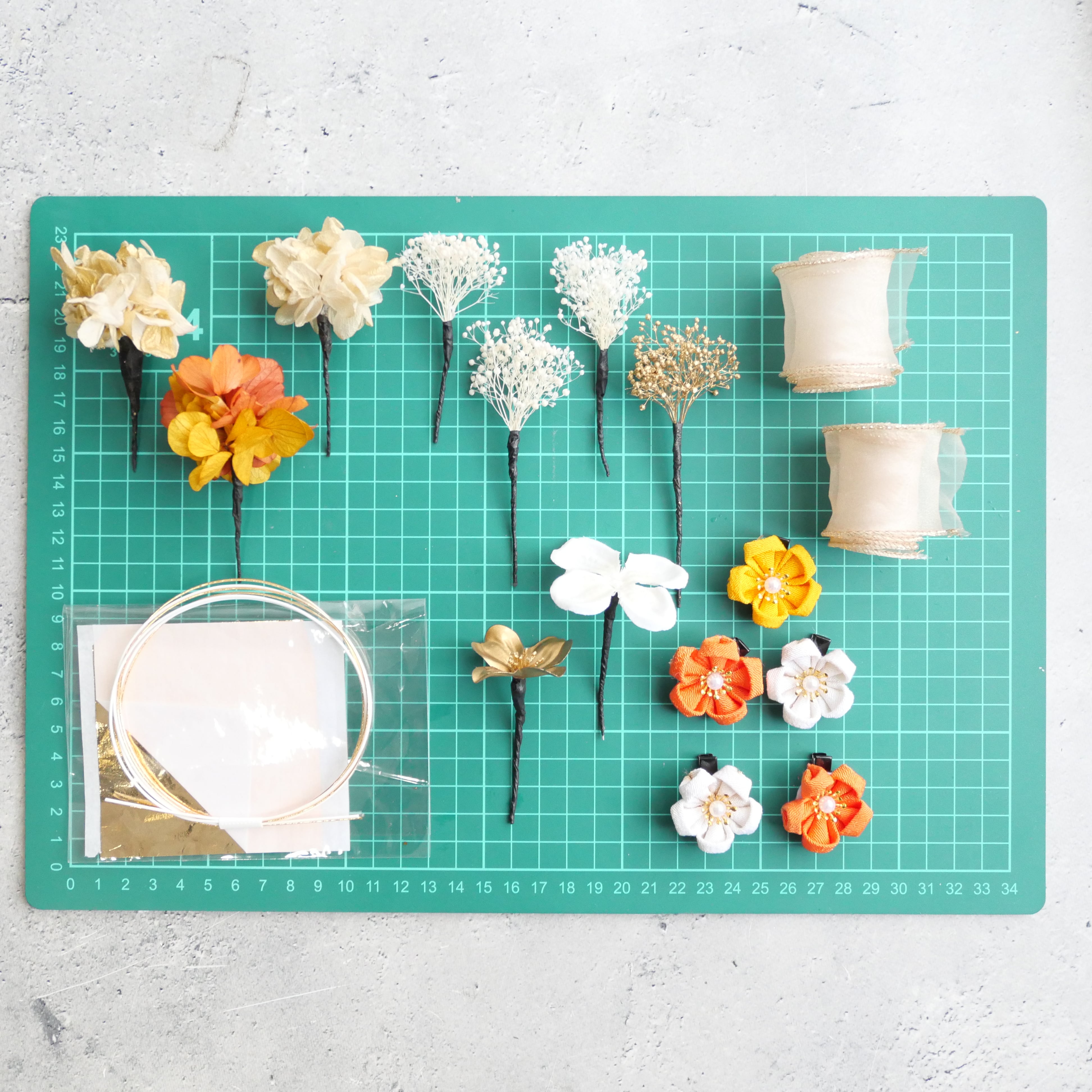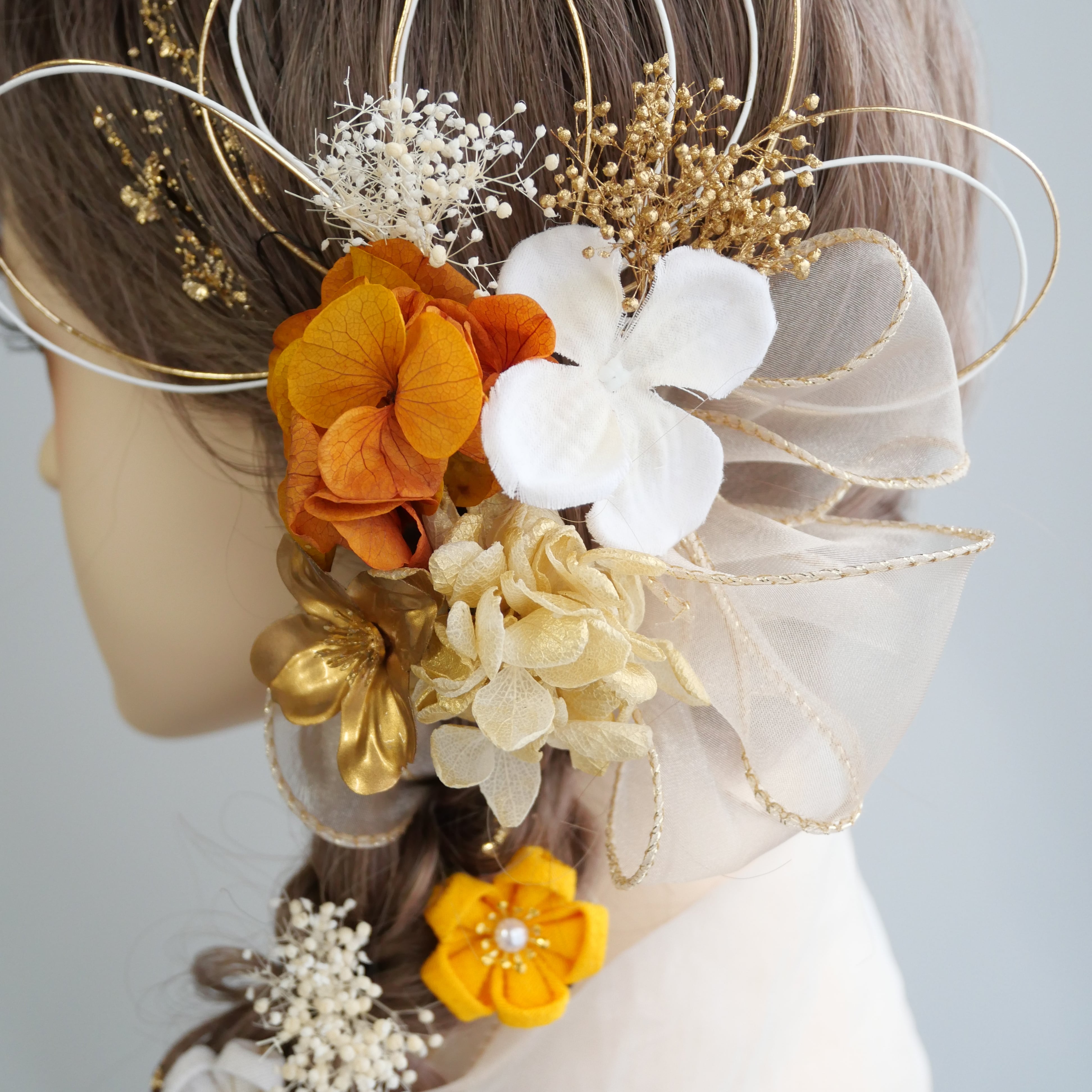 A424 つまみ細工 髪飾り オレンジ 卒業式 袴 結婚式 ドライフラワー 成人式