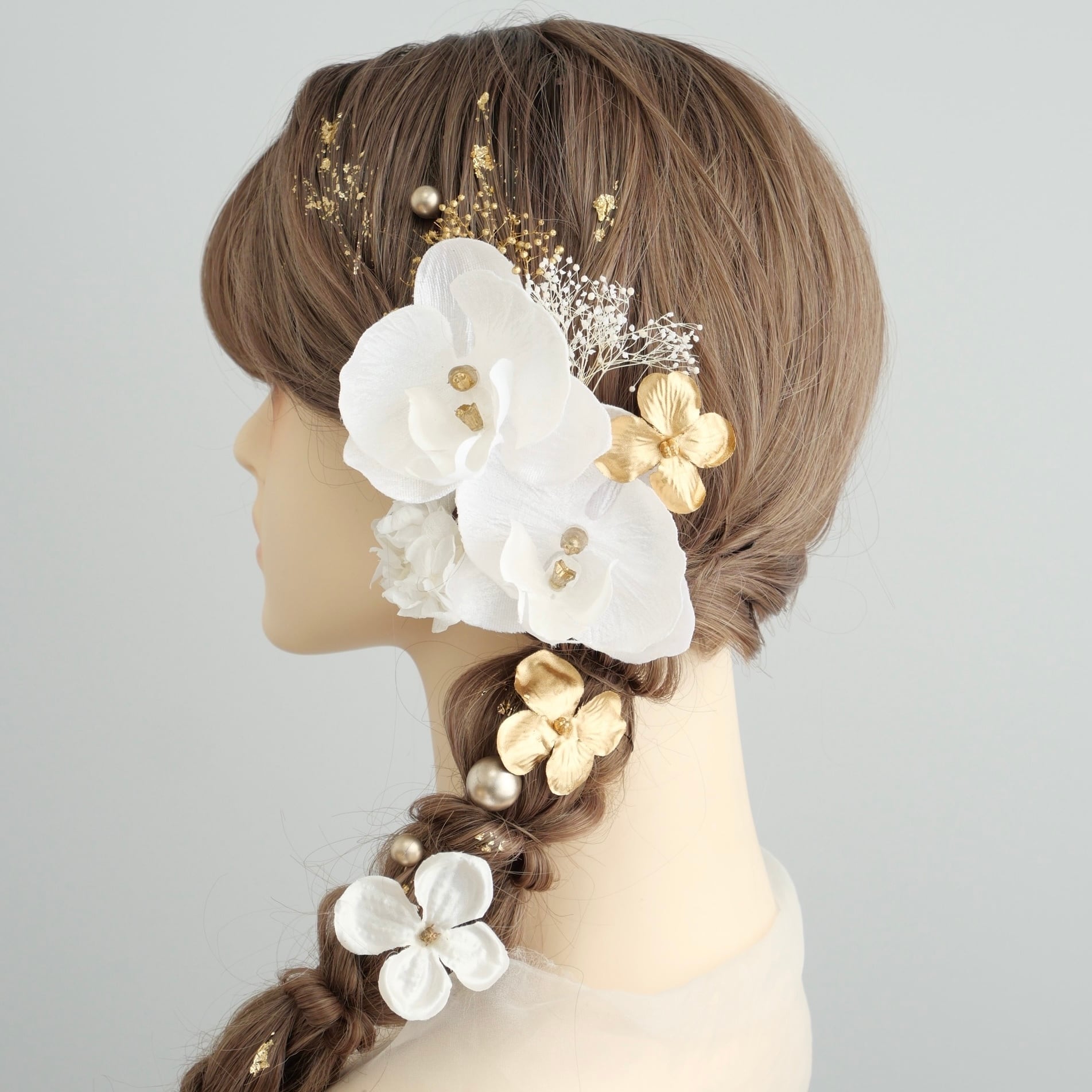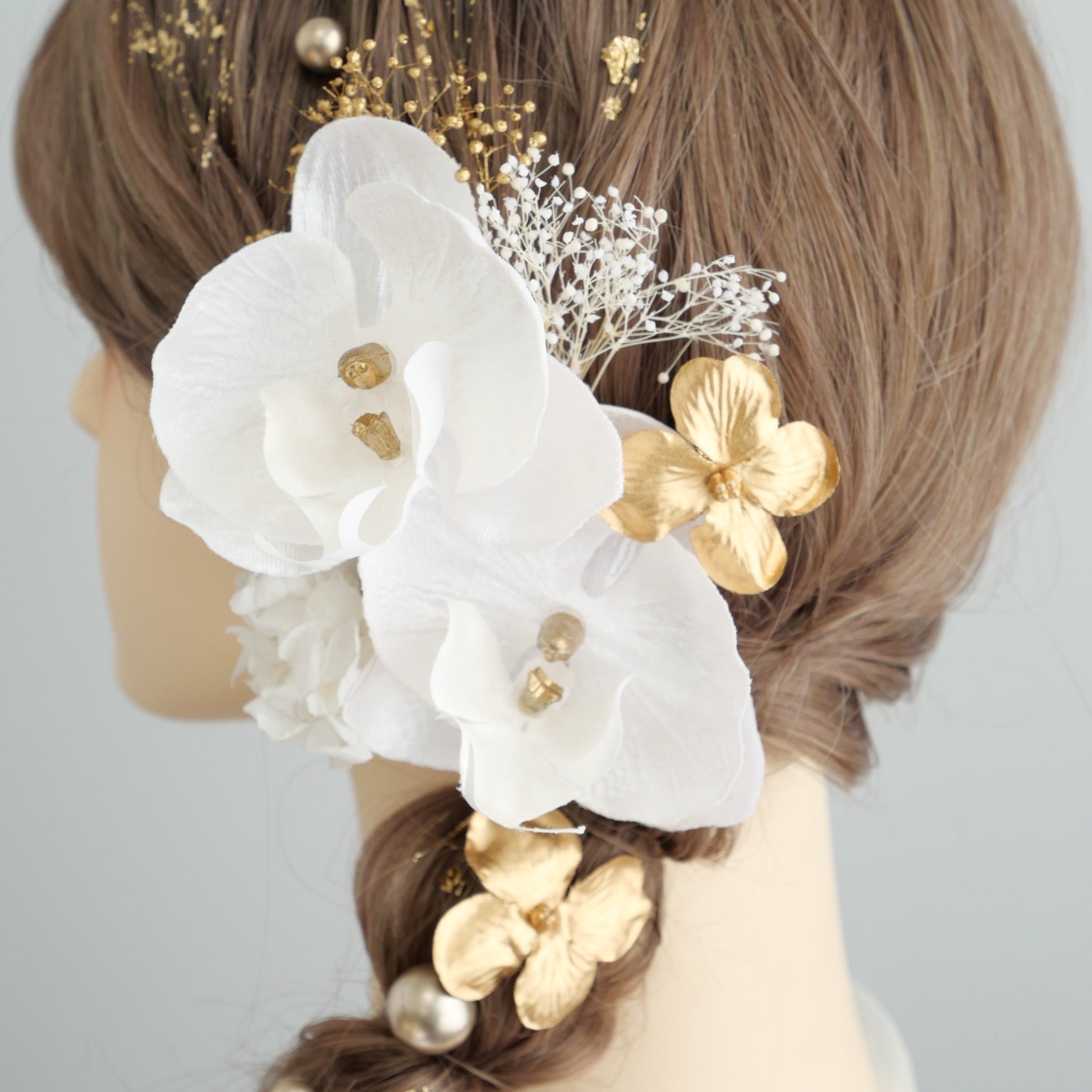 A284 白ゴールド 胡蝶蘭 ドライフラワー 髪飾り 成人式 卒業式 振袖 結婚式 和装