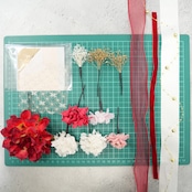 ダリアと桜、リボンを組み合わせた華やかな髪飾りのセットです。