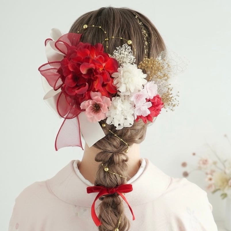 お着物だけではなく、ドレスアップするヘアスタイルにご利用いただけます。