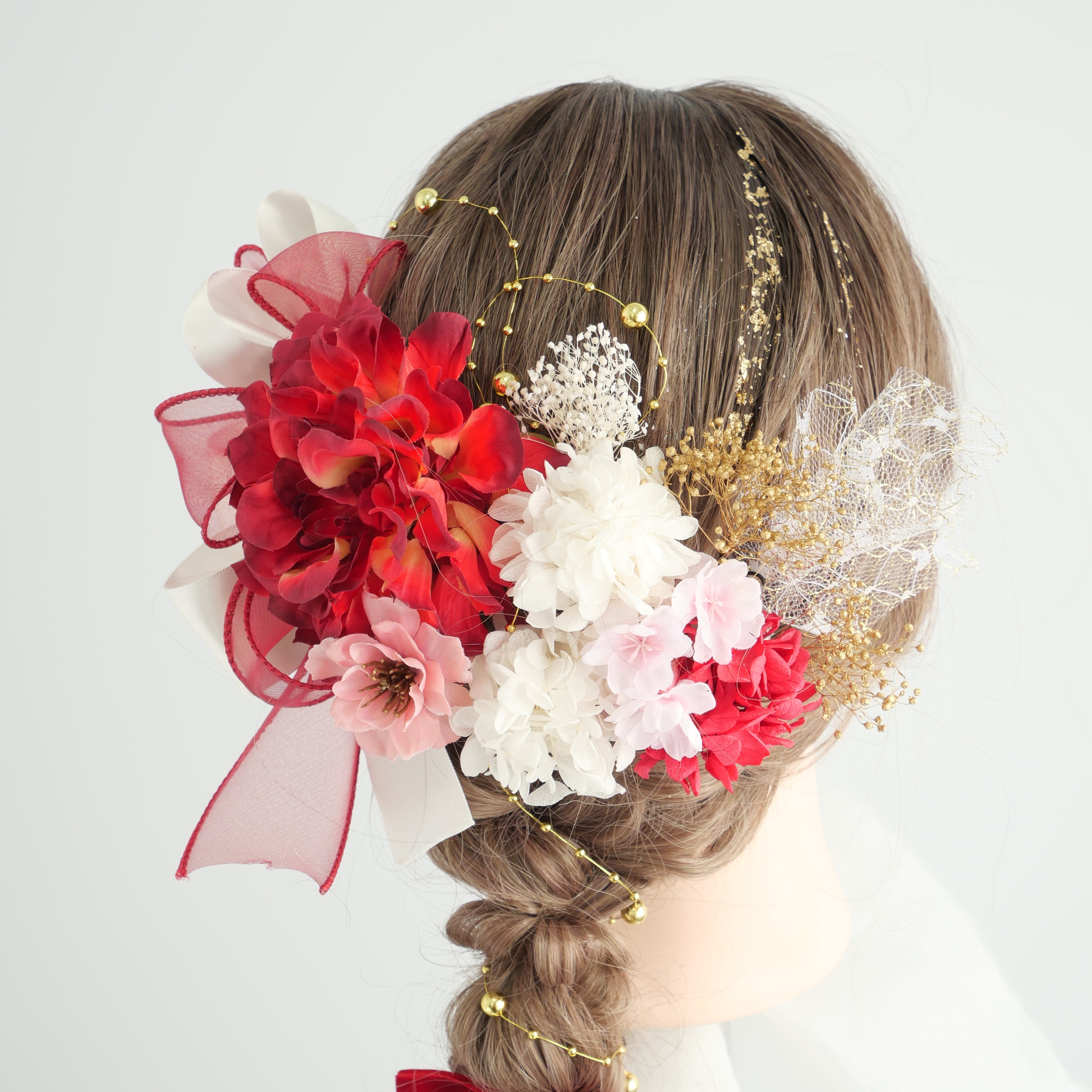 造花 白無垢 成人式 髪飾り 和装 色打掛 振袖 ヘッドドレス ウェディング 結婚式 和婚 ブライダル ヘッドアクセ ヘッドアクセサリー 花 花嫁 卒業式 謝恩会 発表会 花飾り ブライダル髪飾り ベッドパーツ 着物 枯れない 挙式 前撮り フォトウェディング ドライフラワー リボン