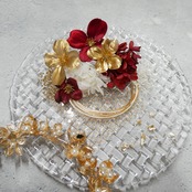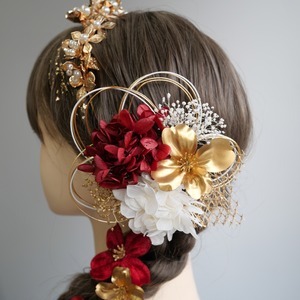 A113 カチューシャ ゴールド×赤 髪飾り 成人式 卒業式 袴 振袖 結婚式 水引 ドライフラワー