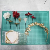 ゴールド、白系のパーツをセットにした髪飾りです
